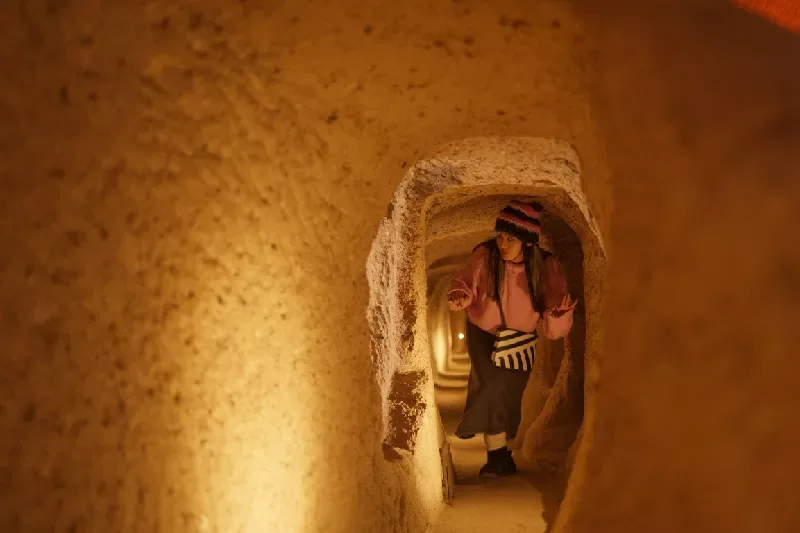 Cappadocia’s underground cities are as captivating as its rock-cut churches. Derinkuyu, the largest, extends 85 meters below ground on eight stories and could have sheltered 20,000 people at once. Kaymakli is smaller but more easily visited, with broader tunnels and better lighting.