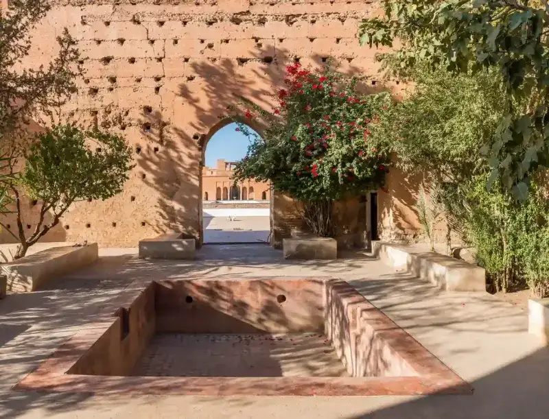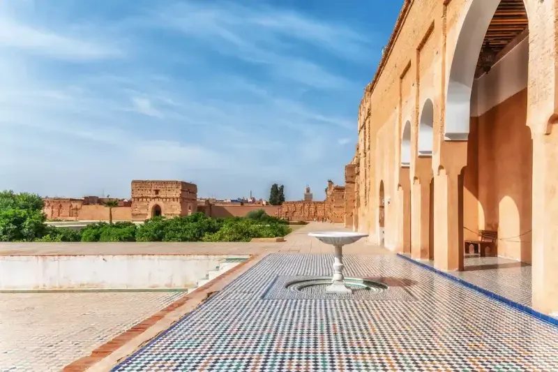 Today, visitors can explore the vast courtyard with its central pool and four sunken gardens. While much of the original ornamentation is gone, the remaining structures offer a glimpse into the palace's former grandeur. The site also houses a small museum displaying artifacts, including a restored 12th-century minbar from the Koutoubia Mosque.