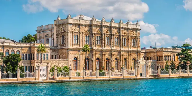 Dolmabahçe Palace was built between 1843 and 1856 under Sultan Abdülmecid I to modernize the Ottoman court in a more European style. Located along the Bosphorus, it replaced Topkapi Palace as the empire’s administrative center and hosted many significant events in Ottoman and early Republican history.